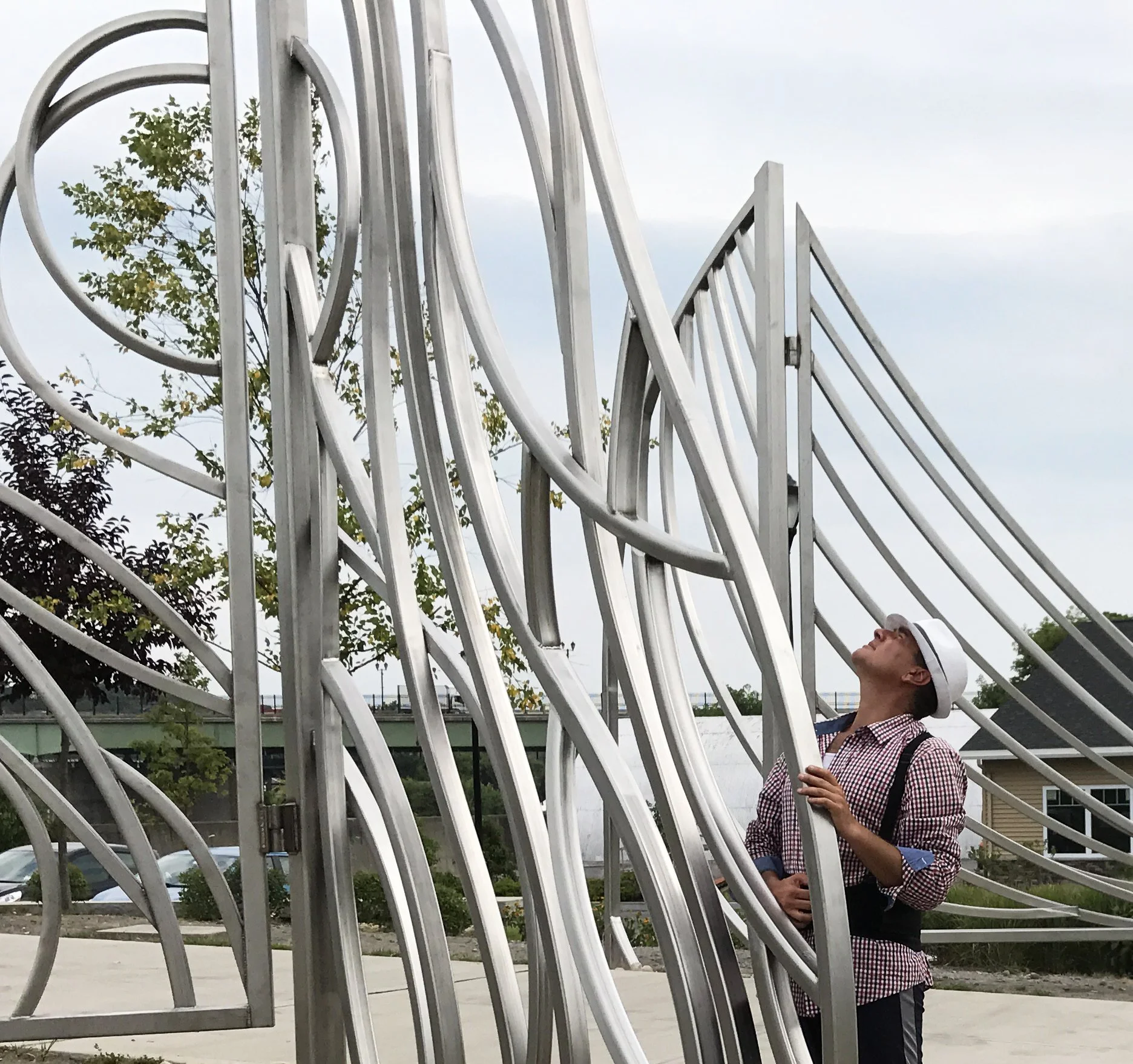Installed on July 11, 2018, in Amsterdam, New York, “Entrance to Now” is a 15-foot filigree construction composed of nearly 4,000 pounds of bent stainless-steel tubing.