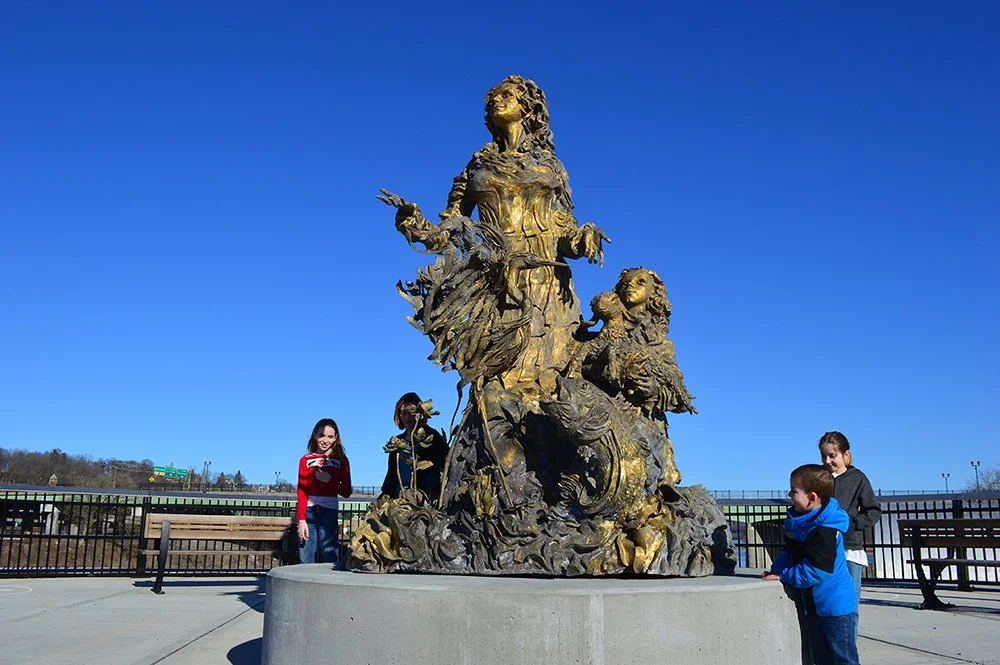 Unveiled on January 8, 2018, “Mother and Child at the Mohawk River” is an 11-foot bronze sculpture created for the Mohawk Valley Gateway Overlook (MVGO) in Amsterdam, New York.